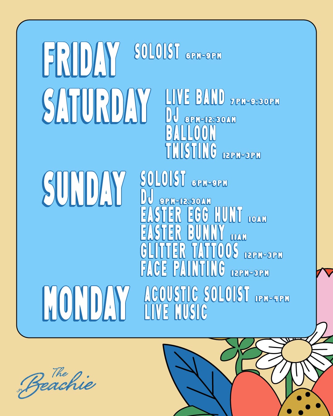 Bring the family, settle in for the afternoon, and enjoy a relaxed Easter long weekend at the Beachie.