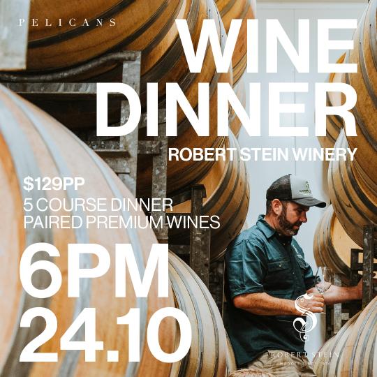 Join us for a five-course dinner at Pelicans, paired with premium wines from Robert Stein in Mudgee. Celebrated for award winning Rieslings and their family legacy.